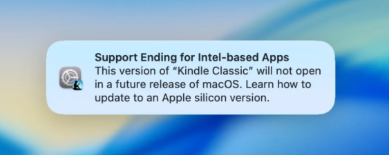 Artikel). Startet man eine Intel-basierte App unter macOS 26.4, so weist Apple nun deutlich auf die geplanten Umstellungen hin. In einer "zukünftigen Version von macOS" werde das Programm nicht mehr starten. Für Intel-Macs ist hingegen schon ab Herbst 2026 Schluss mit Major Releases, macOS 26 Tahoe geht als das letzte Betriebssystem mit Intel-Unterstützung in die macOS-Geschichte ein.