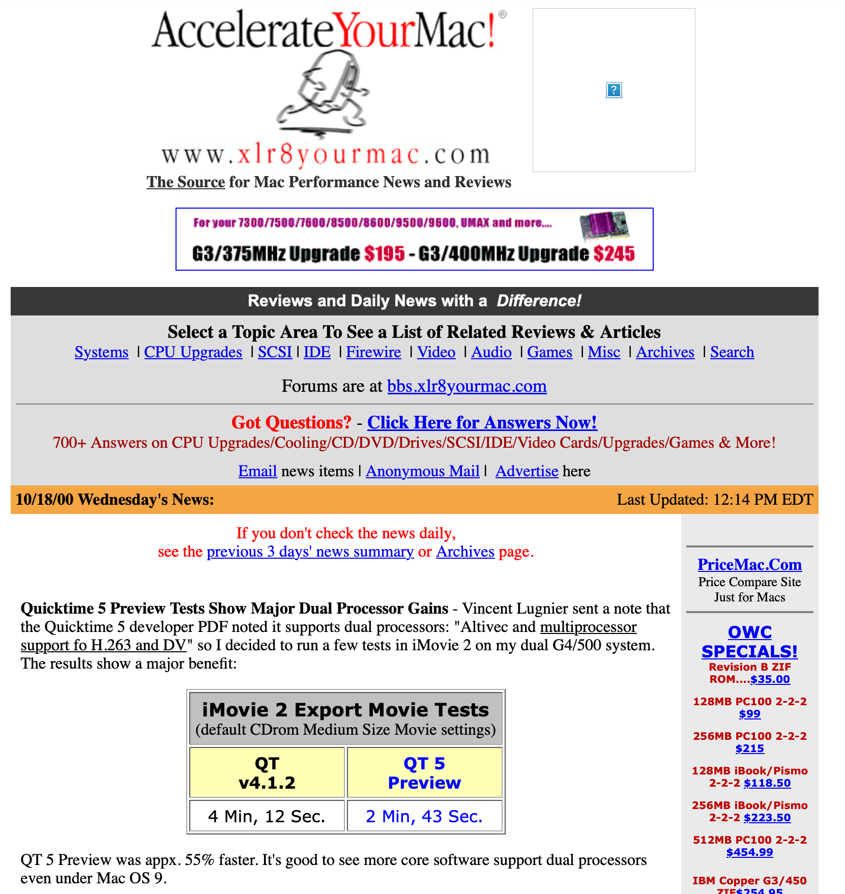 QuickTime 5 und PowerPC-Upgrades – diese Themen prägten xlr8yourmac vor 25 Jahren.
