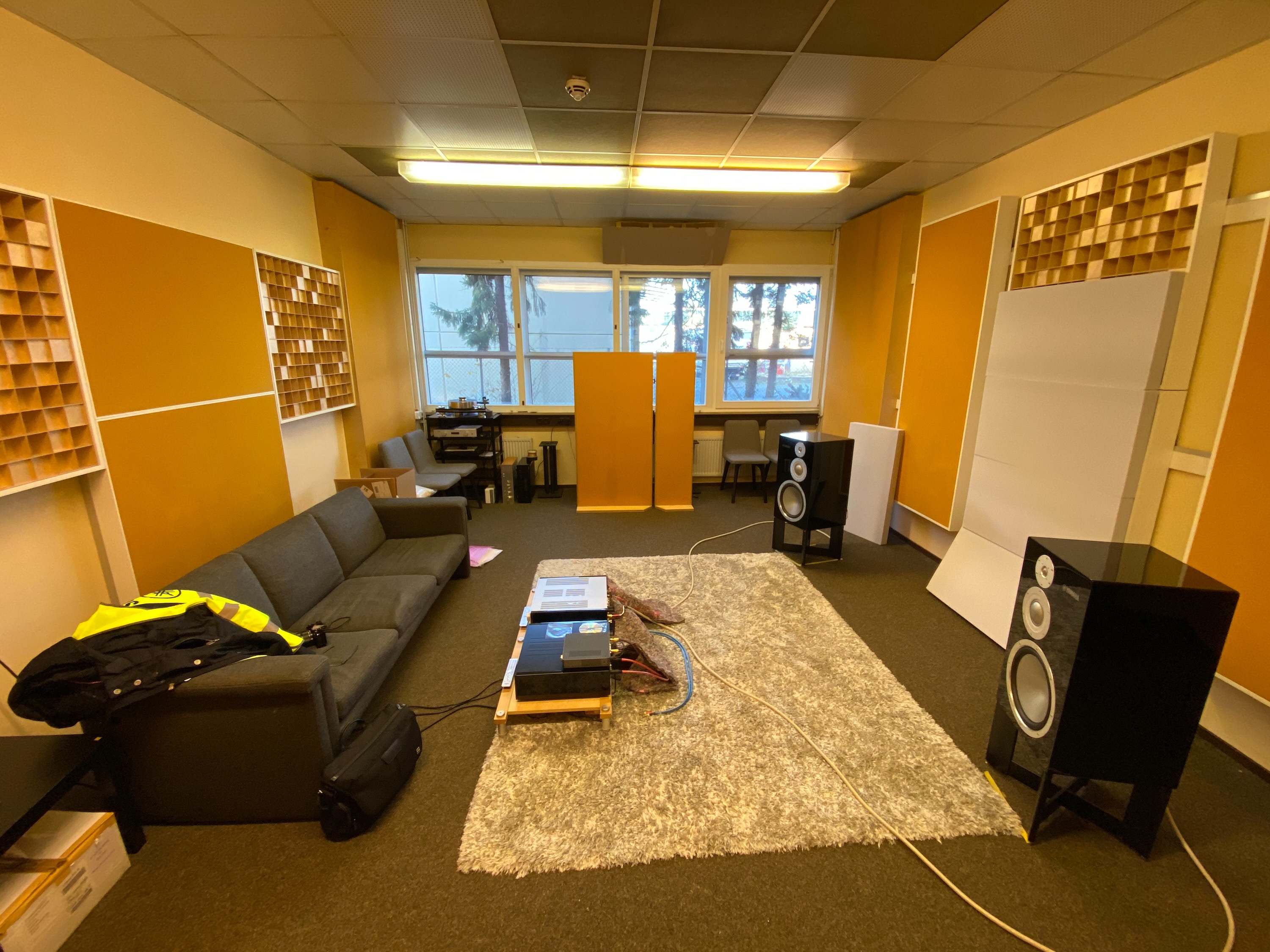 Plädoyer: Gönn Dir Roomtuning!Ein akustisch professionell behandelter Raum ist nicht nur die Grundvoraussetzung für den seriösen Umgang mit dem Hobby HiFi. Es kann auch eine optische Aufwertung bedeuten. Vergessen Sie solche Spar-Tricks wie Eierkartons oder Noppenschaum an die Wand zu klatschen. Das bringt so gut wie nichts und ist zudem absolut nicht zielgerichtet. – Und sieht wirklich grausam aus.