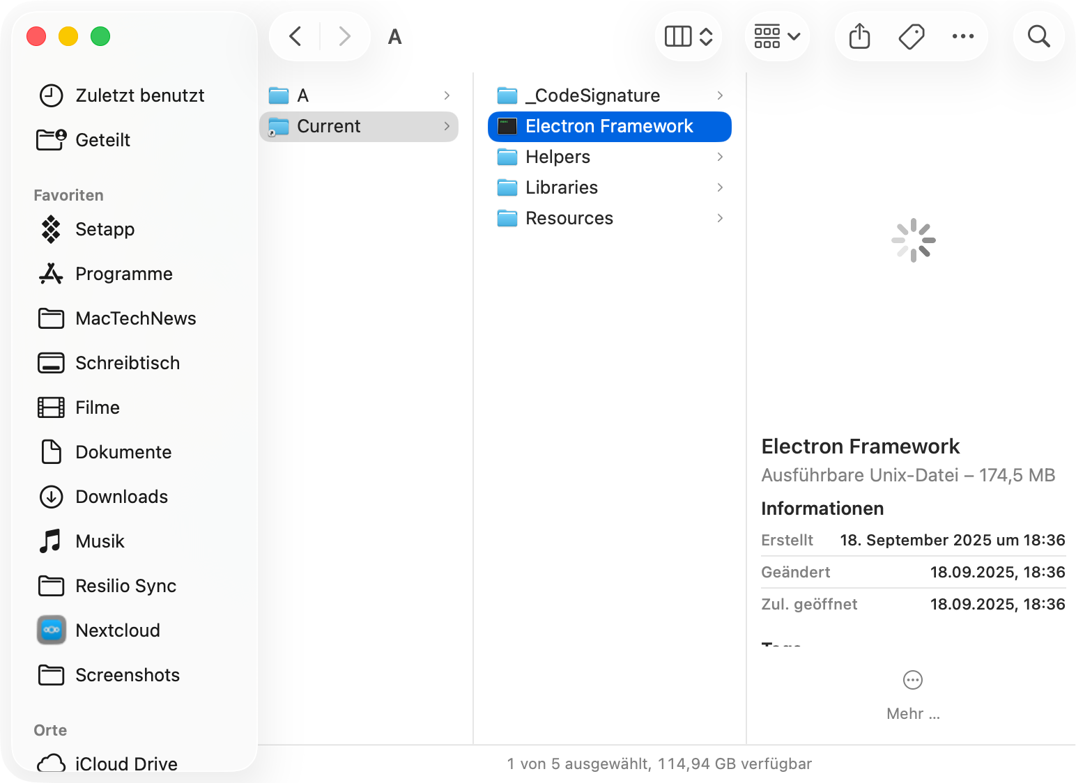 Zeitweilige Abhilfe: minimierenDamit die jeweiligen Apps unter macOS Tahoe nicht mehr auf die Bremse treten, müssen sie einzeln aktualisiert werden – das Framework wird nicht systemweit bereitgestellt, sondern ist stets Teil des App-Pakets. Wann Entwickler eine neue Version bereitstellen, ist unklar; die aktualisierten Versionen wurden vor fünf Tagen bereitgestellt. Erschwerend kommt hinzu, dass man als Anwender kaum erfährt, welche Electron-Version in einer App integriert ist. Um wenigstens zeitweise von dem nervigen Ruckeln verschont zu werden, können Anwender die Apps einfach minimieren: Solange Electron-Programmfenster als Miniatur im Dock verweilen, verlangsamen sie nicht mehr die Fensterdarstellung.