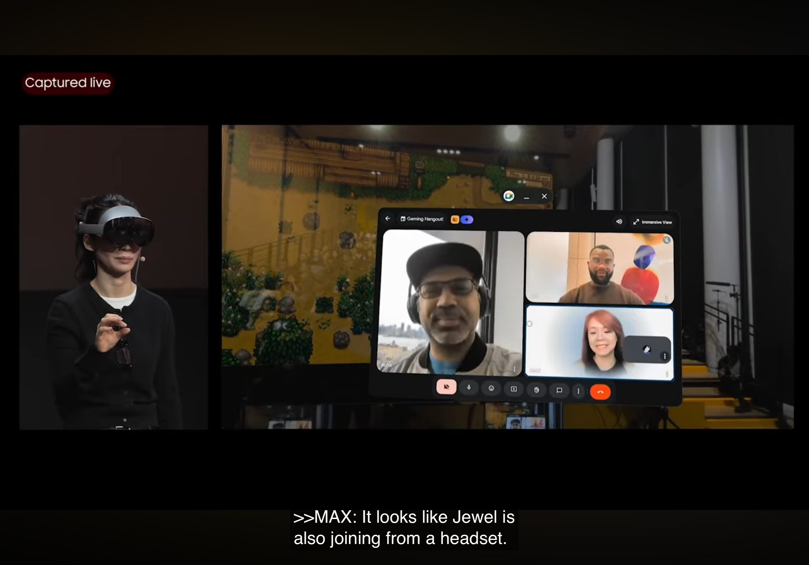 Bei der Demonstration des Geräts betonten die beiden Live-Präsentationen immer wieder die integrierte Google-KI, welche auf Sprachbefehle reagiert. Sie sucht Informationen aus dem Netz, beantwortet allgemeine Fragen, kann aber auch KI-Animationen erzeugen, etwa von lustigen Tieren mit VR-Brillen in einer von Hollywood-Dekorationen strotzenden Stadtlandschaft, wie die beiden Präsentatoren live vorführen. Die KI-Berechnung läuft im Hintergrund, während die Anwender weiter ruckelfrei durch das Augmented-Reality-Interface navigieren, welches Fenster über dem Abbild der Umwelt positioniert – ganz wie im Vorbild VisionOS.