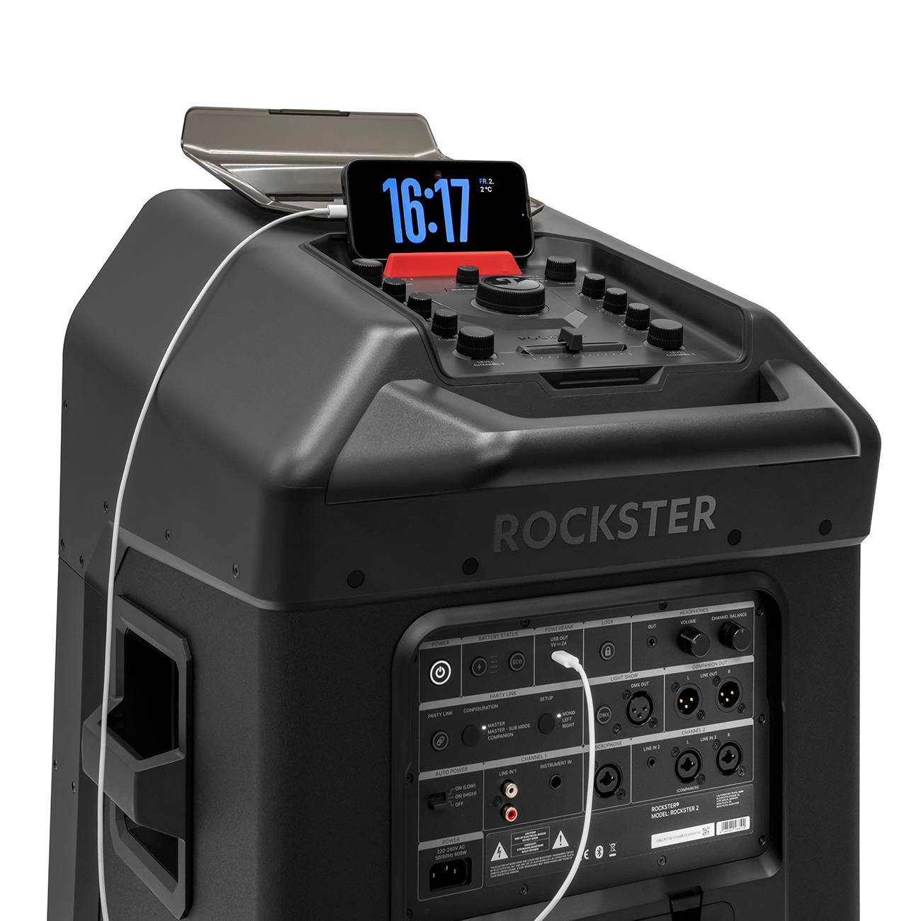 ROCKSTER 2, einen extrem leistungsstarken, portablen Event-Bluetooth-Speaker, der auf hohe Pegel, tiefen Bass und maximale Einsatzvielfalt ausgelegt ist. Neben der Akkustik steht die neue Steuerbarkeit im Mittelpunkt: DMX-Control ermöglicht das Ansteuern von Lichtsystemen wie LED-Bars oder Lichtorgeln synchron zur Musik. Dazu kommen ein beleuchtetes Bedienpanel, umfangreiche Einstellungsmöglichkeiten per Teufel Go App und ein Anschluss- und Link-Konzept, das vom Karaoke-Abend bis zur großen Outdoor-Party alles abdeckt.