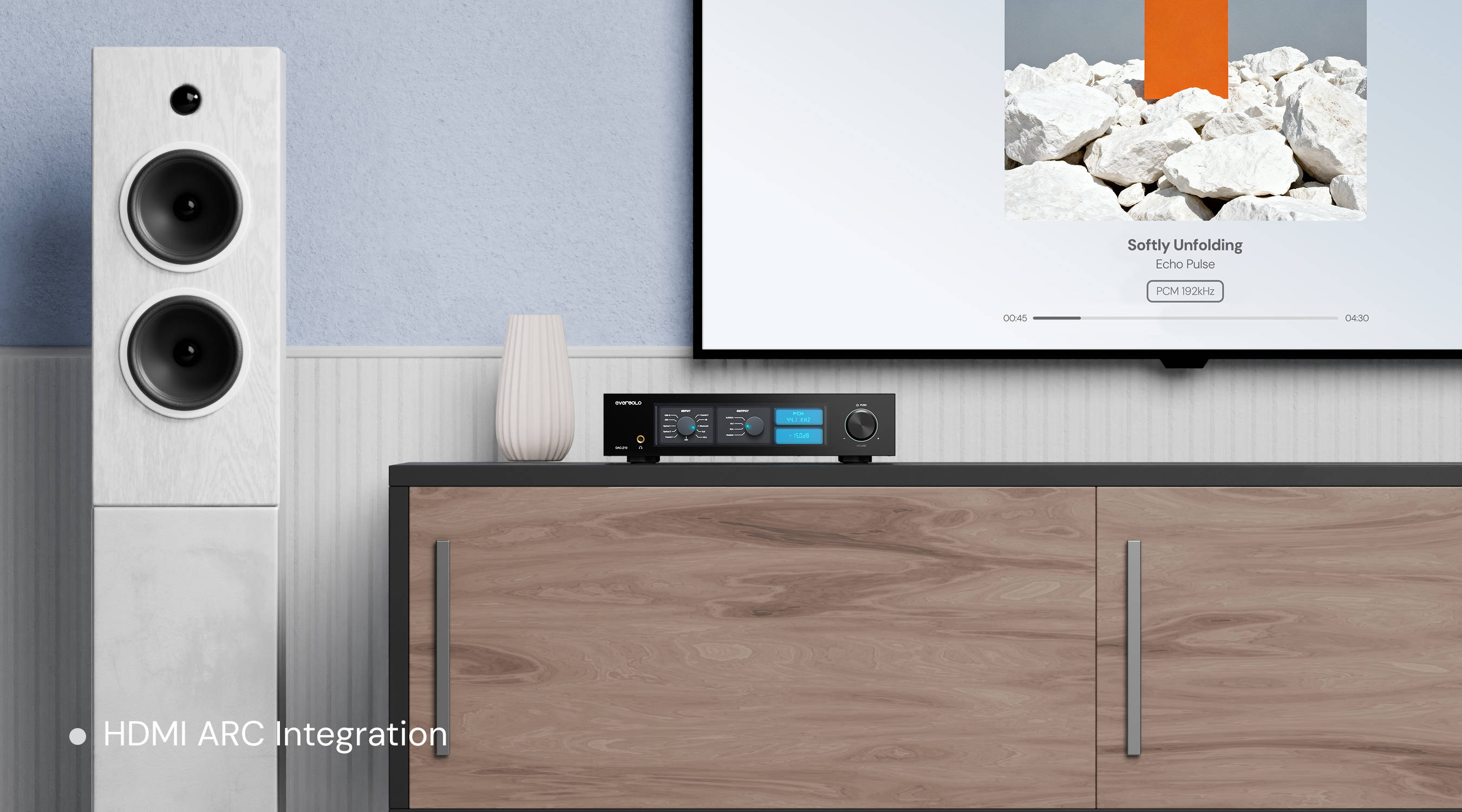 Der DAC-Z10 verfügt über einen vollständig symmetrischen Vorverstärker, der analoge XLR- und RCA-Ein- und Ausgänge für den linken und rechten Kanal unterstützt (Doppel-Mono-Aufbau) und eine analoge Verstärkung von +10 dB bietet. In Kombination mit dem fast schon eversolo-typischen R2R-Lautstärkeregelungsnetzwerk soll das extrem geringe Verzerrungen und einen großen Dynamikbereich garantieren. Das Datenblatt spricht von Verzerrungen (THD+N) von 0,00008% bei 130 dB Dynamikumfang. Solche Werte bieten sonst nur weitaus teurere Komponenten. Wenn überhaupt.