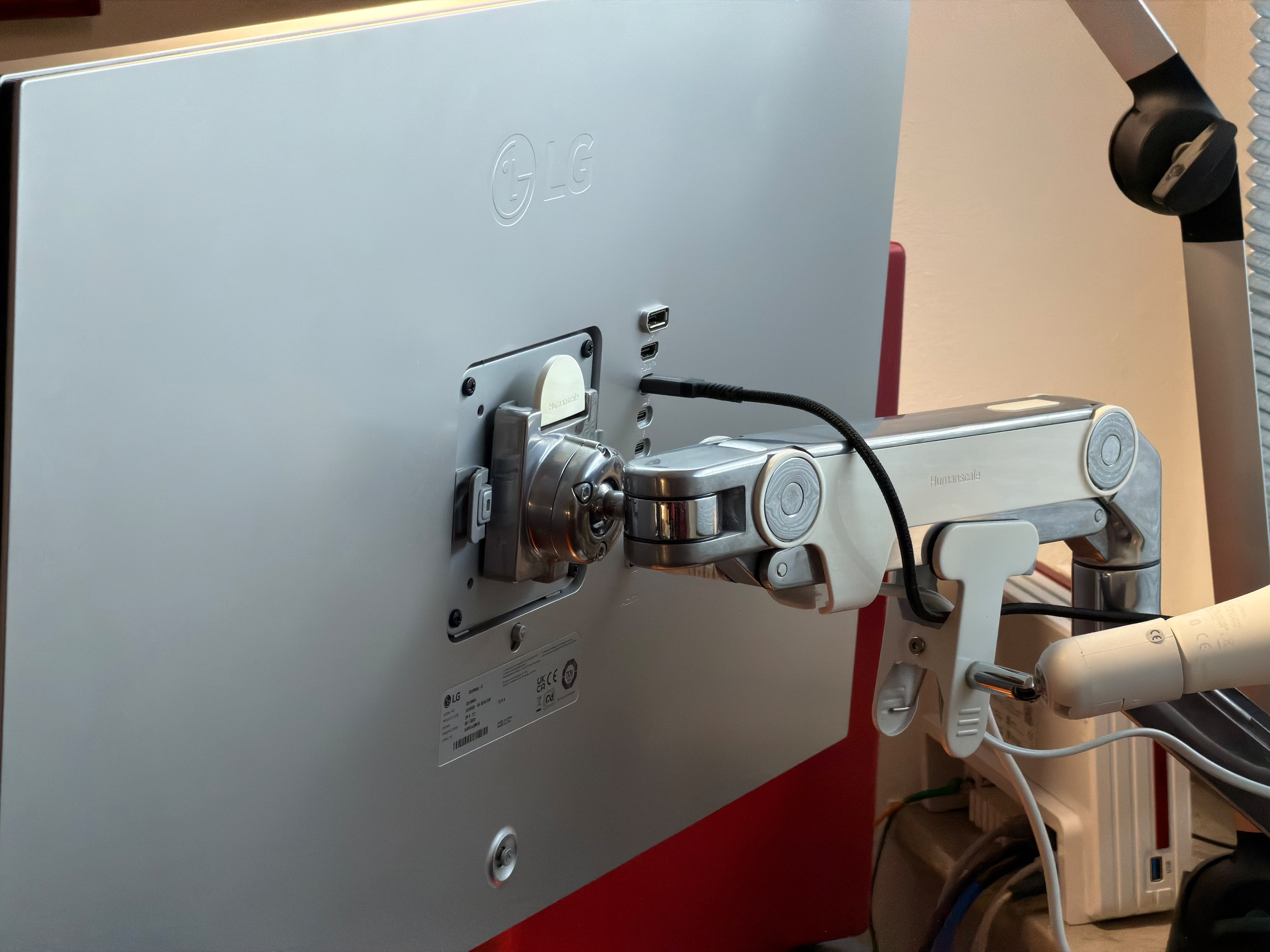 Der LG ist in Bezug auf die Aufstellung also sehr viel flexibler, weil man sich hier nicht fest für Standfuß oder Schwenkarm entscheiden muss. Beides geht. Auch in Sachen Anschlussvielfalt gewinnt der LG deutlich, denn er kann auch mühelos andere als nur Apple-Bildquellen wiedergeben, sowohl über USB-C, HDMI oder Display Port.