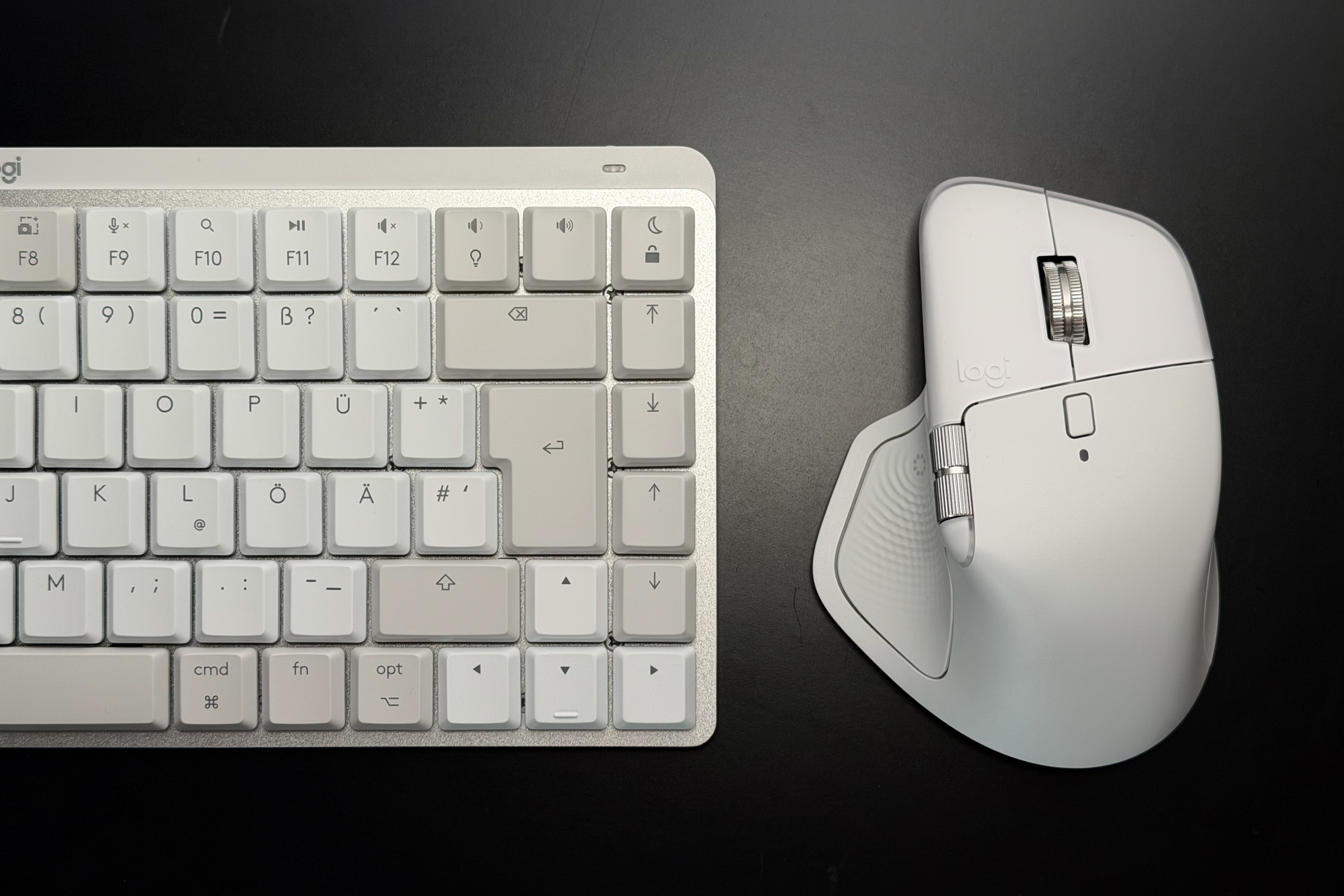 Die MX Master 4 neben der Tastatur MX Mechanical Mini for Mac (Test). Greift man die Maus beim Umsetzen fester (auch weil die MX 4 etwas rutschiger als die gummierte 3s ist), drückt man unweigerlich die Maustaste nach innen und löst die eingestellte Funktion aus. Das ist total lästig und bislang konnte ich mich daran nicht gewöhnen. Wie bei der 3s habe ich mir die Daumentaste mit der Tastenkombination cmd-H konfiguriert, um Fenster auszublenden. Ich navigiere damit routiniert und schnell, indem ich mit einem leichten Zucken des Daumens nicht benötigte Fenster aus dem Blick räume. Doch nun löse ich ständig versehentlich beim Umsetzen der Maus die Taste aus und mein Arbeitsfenster verschwindet. Ich bin nicht sicher, ob ich mich daran in absehbarer Zeit gewöhnen kann. Passiert mir das im konzentrierten Arbeitsfluss mehrmals hintereinander, greife ich genervt wieder zur 3s.