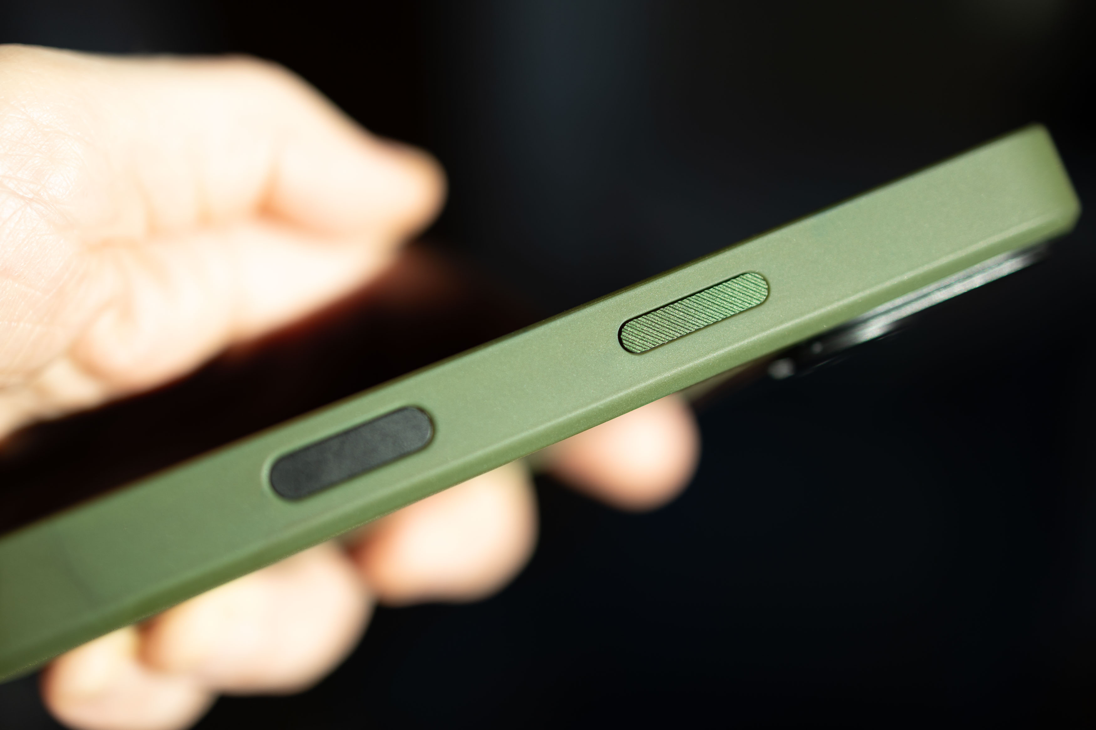 Schön ist auch, dass sich die Tasten des iPhone durch entsprechende Verlängerungen nach außen genau so gut wie ohne Hülle bedienen lassen. Einschließlich der Kamerataste und dessen Spezialfunktionen durch Swipen. Im Case ist außerdem ein Metallring verbaut, um das iPhone sicher an MagSafe-Zubehör befestigen zu können. Auf der Innenseite ist ein weiches Flies eingearbeitet.