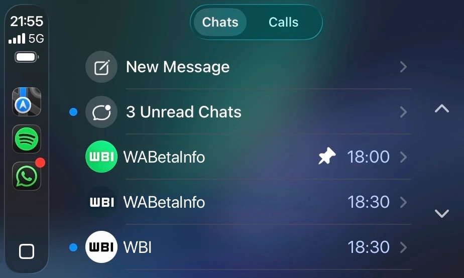WABetaInfo anmerkt, öffnet sich nach dem Antippen der CarPlay-Anwendung von WhatsApp die Chatliste. Unterhaltungen, die neue Nachrichten beinhalten, sind mit einem blauen Punkt gekennzeichnet. Anwendern ist es jedoch nicht möglich, den gesamten Verlauf einzusehen: Die Entwickler möchten damit wohl sicherstellen, dass Autofahrer nicht zu sehr vom Straßenverkehr abgelenkt werden. Die Liste beinhaltet Informationen darüber, ob der Chat stummgeschaltet oder angeheftet ist. Ferner ist jedem Kontakt ein Zeitstempel mit dem Versand oder Eingang der letzten Nachricht zugeordnet. Wird ein Kontakt angetippt, öffnet sich eine Ansicht mit dem Profil der Person – und der Möglichkeit, diese anzurufen oder ihr zu schreiben.