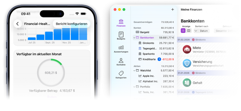 Weitere NeuerungenKontoverbindungen von Kontakten können nun als inaktiv markiert werden und tauchen damit nicht mehr in Autovervollständigen-Vorschlägen auf – ideal für alte oder einmalige Zahlungspartner. Zudem bietet iFinance 5.5 einen deutlich schnelleren Import großer Mengen an Online-Buchungen. Der Kontenbericht und der Kontenabschlussbericht sind jetzt interaktiv: Für jeden gewählten Selektionsbereich lassen sich die zugehörigen Buchungen direkt anzeigen – vom Überblick bis ins Detail, ohne Kontextwechsel.