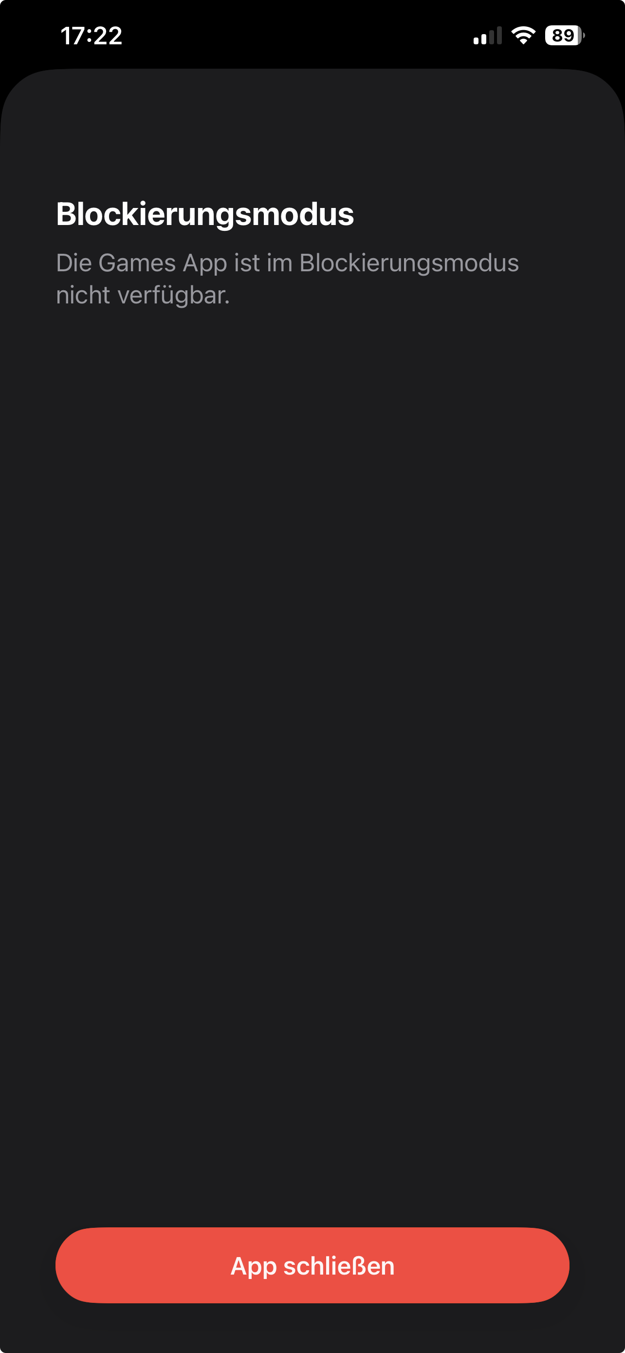 Ein gewisser Fortschritt: Die Spiele-App erklärt nun, warum sie auf einem Lockdown-iPhone nicht funktioniert.